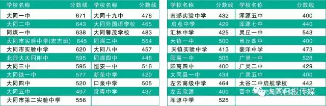 高中学校录取分数线如下: